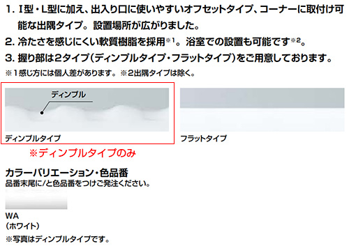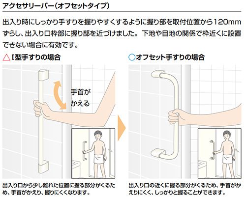 ・出入り口専用の縦手すりです。横手すりとしては使用しないでください。