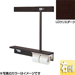 木製手すり[壁固定][I型][二連紙巻器付][棚付き][後付け][インテリアリモコン対応][クリエダーク][右仕様]