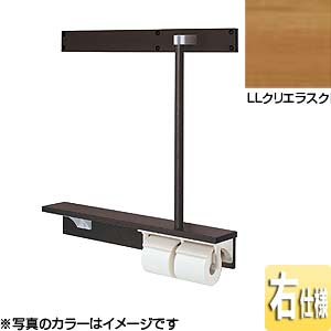 ●木製手すり[壁固定][I型][二連紙巻器付][棚付き][後付け][インテリアリモコン対応][クリエラスク][右仕様]