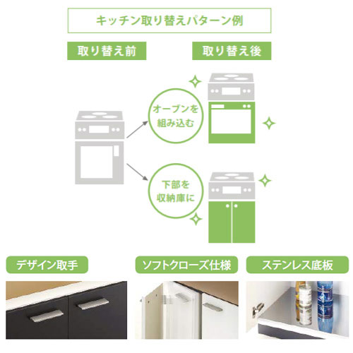 コンロ下を収納スペースとして有効活用。