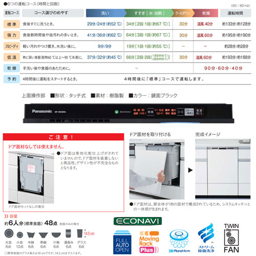 ・運転コース:6コース(低温/標準/強力/スピーディ/予約/乾燥)