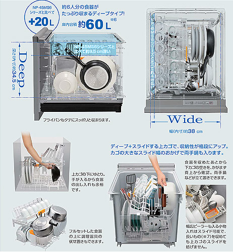 ビルトイン食洗機[取替用][スライドオープン][ドアパネル一体型][深型][幅45cm][奥行60cm][約6人用][シルバー]