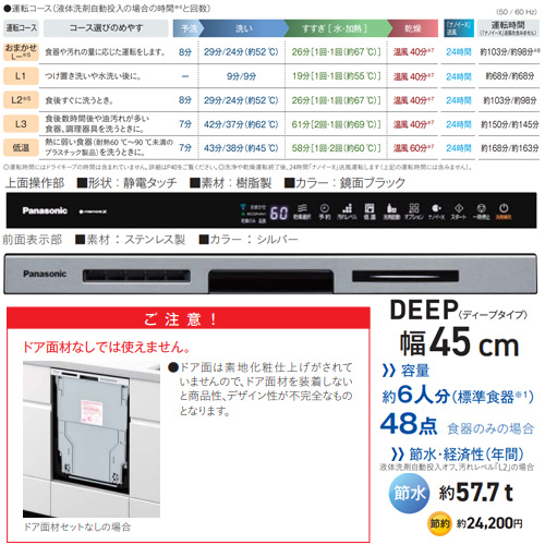 ビルトイン食洗機 M9Plusシリーズ[新設用][スライドオープン][ドア面材型][深型][幅45cm][奥行65cm][約6人用][シルバー]