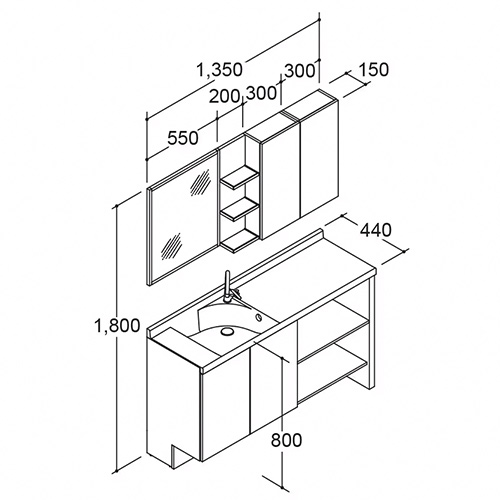 間口:1350mm×高さ:1800mm×奥行:440mm