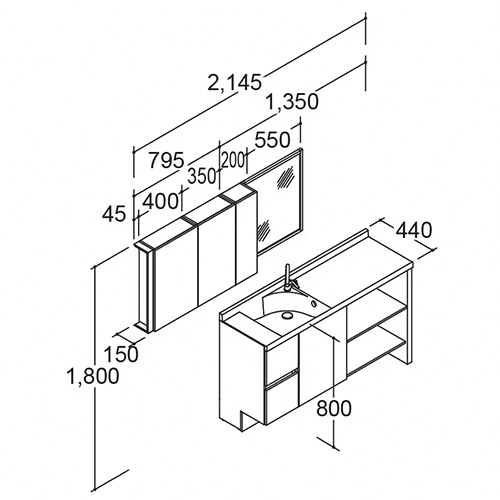 間口:2145mm×高さ:1800mm×奥行:440mm