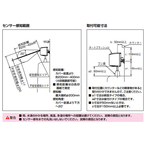 ・感知距離:約200〜400mmで4段階調節可能(出荷時約400mm)