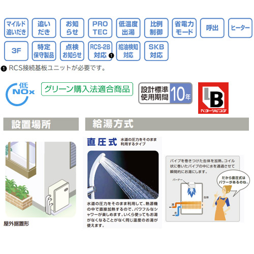 石油ふろ給湯器[浴室・台所リモコン付属][標準タイプ][水道直圧式][屋外据置型][前面排気][3万キロ][ステンレス外装]