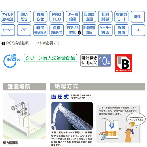石油ふろ給湯器[浴室・台所リモコン付属][標準タイプ][水道直圧式][屋内据置型][上方排気][強制給排気][4万キロ]