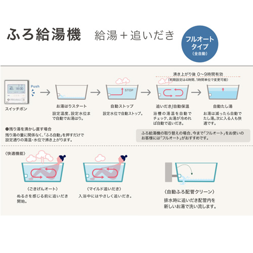 ※「ふろ保温」「追いだき」スイッチ操作は、給湯の温度設定が最高レベルの[7]に設定されていないと