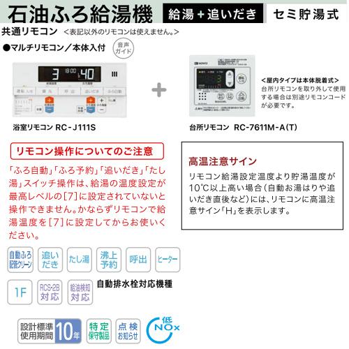 石油ふろ給湯器[浴室・台所リモコンセット][フルオート][貯湯式][高圧力][屋外据置型][前面排気][4万キロ][ステンレス外装]