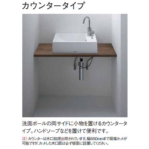 ※カウンターは現場カット(650mmまで)が可能です。カットした木口面は必ず壁面に設置してください。