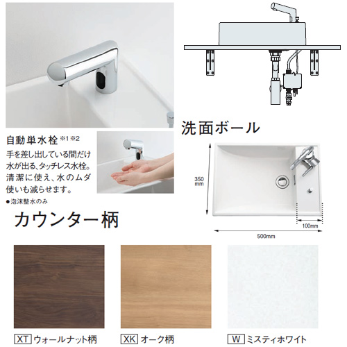 アクアファニチャー[間口900mm][カウンタータイプ][自動単水栓][止水栓壁床兼用]