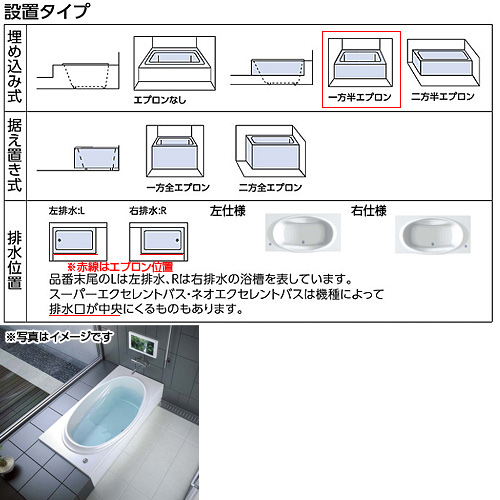 ●浴槽 ネオエクセレントバス[埋込浴槽][1600サイズ][一方半エプロン][ワンプッシュ排水栓式]