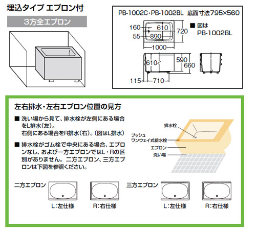 ●浴槽 ポリエック[据置浴槽][和風タイプ][1000サイズ][3方全エプロン][バランス釜取付用]