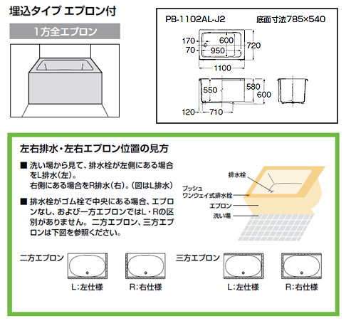 浴槽 ポリエック[据置浴槽][和洋折衷タイプ][1100サイズ][1方全エプロン][公団用][エプロン着脱式]