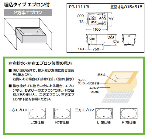 浴槽 ポリエック[据置浴槽][和洋折衷タイプ][1100サイズ][2方半エプロン]