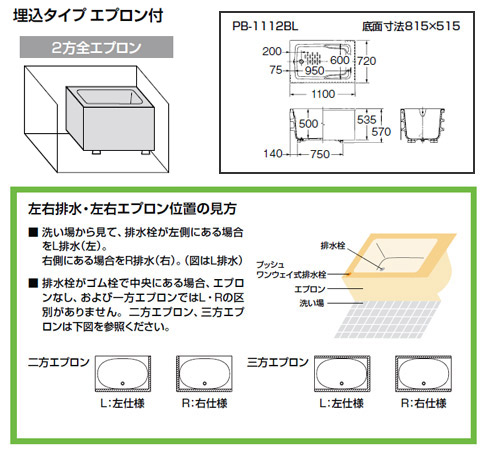 浴槽 ポリエック[据置浴槽][和洋折衷タイプ][1100サイズ][2方全エプロン]