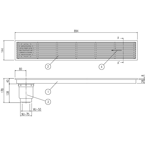 浴室排水ユニット[ステンレス][非防水層タイプ][縦引きトラップ][長さ900タイプ][浴槽部材]