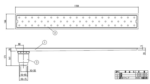 浴室排水ユニット[ステンレス][非防水層タイプ][縦引きトラップ][長さ1200タイプ][浴槽部材]