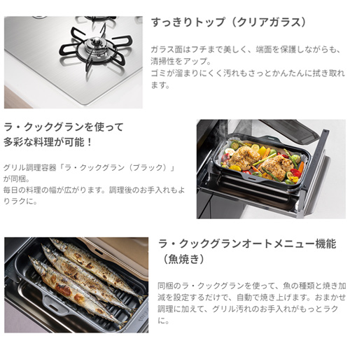 ビルトインガスコンロ ブリリオブラックライン[75cm][乾電池][クリアガラストップ:マッティーブラック][前面パネル:グラファイトブラック][ラ・クックグラン同梱]