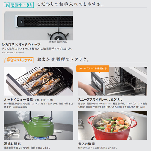 グリル排気口をアイランド構造とし、清掃性がアップしました。