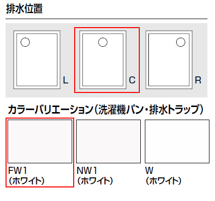 こちらの商品は排水位置が、中央・左・右の仕様があります。