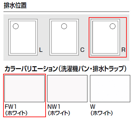 こちらの商品は排水位置が、中央・左・右の仕様があります。