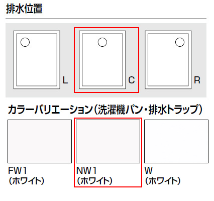 こちらの商品は排水位置が、中央・左・右の仕様があります。