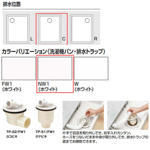こちらの商品は排水位置が、中央・左・右の仕様があります。