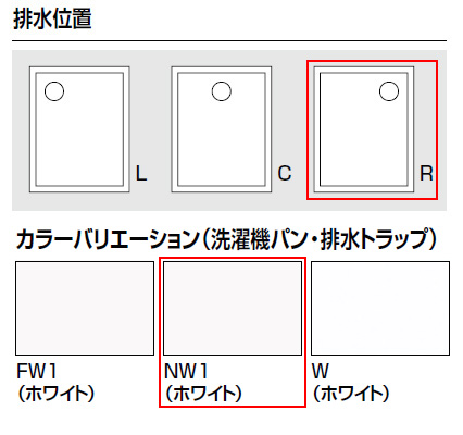 こちらの商品は排水位置が、中央・左・右の仕様があります。
