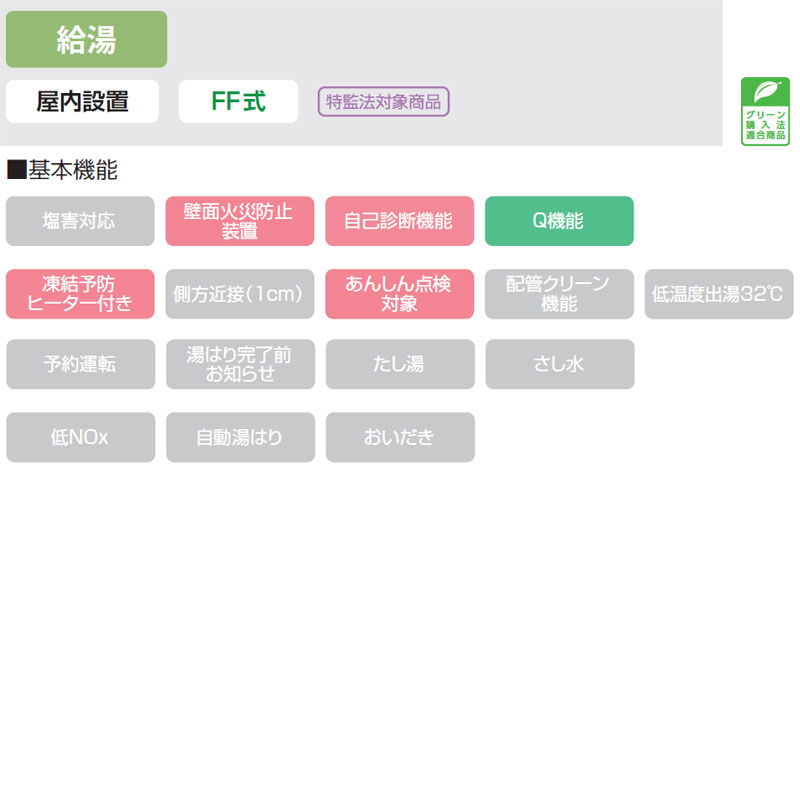 ガス給湯器[本体+組込リモコン][屋内壁掛型][上方排気][強制給排気][給湯専用][16号][15A]