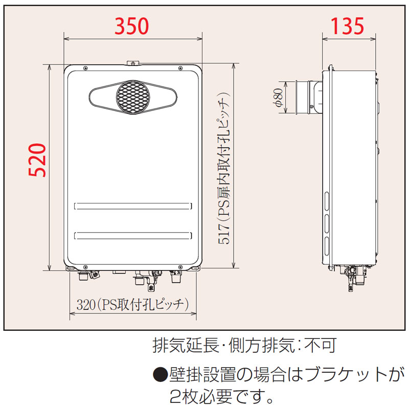 ・排気延長不可
