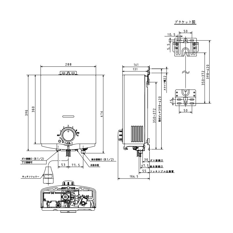 ガス瞬間湯沸かし器[小型湯沸器][元止式][5号][音声ガイダンスあり][台所専用][乾電池][寒冷地]