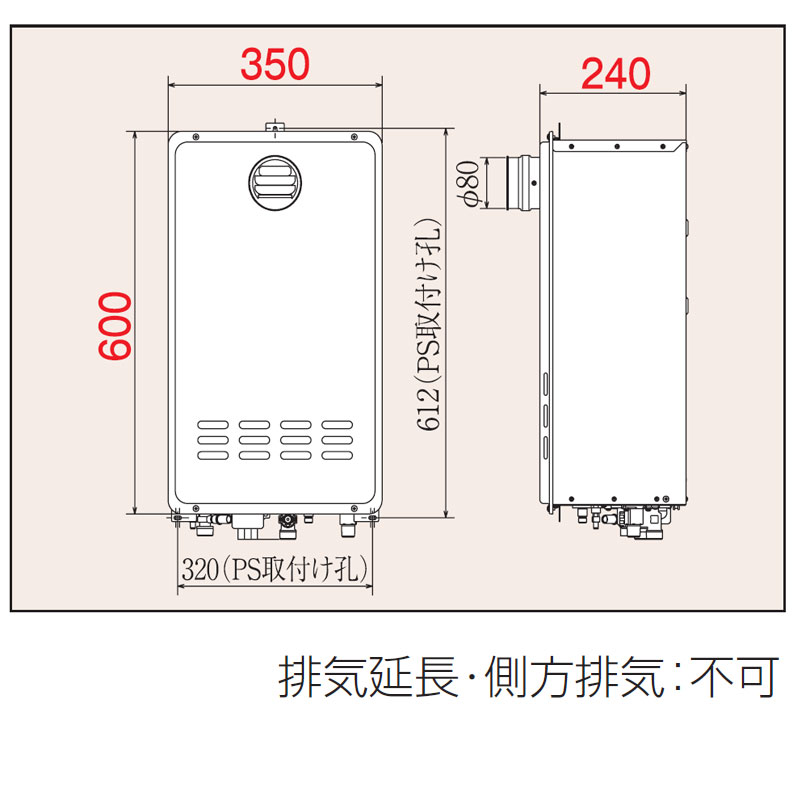 ●ガス給湯器[エコジョーズ][台所リモコン][PS扉内設置型][前面排気][延長不可][給湯専用][オートストップ][20号][15A]