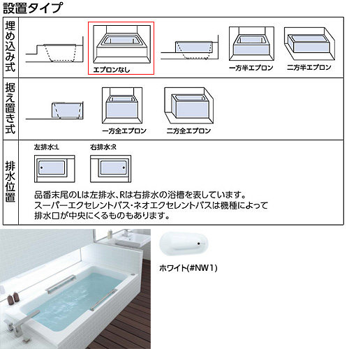 浴槽 ラフィア[埋込浴槽][500サイズ][エプロンなし][ワンプッシュ排水栓式][エプロンなし][ホワイト]