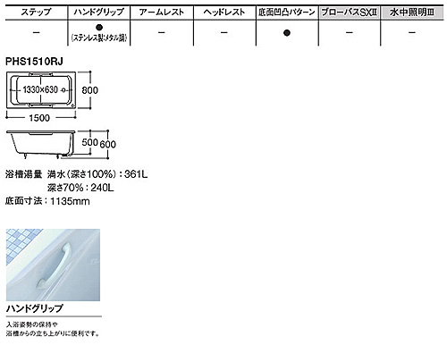 ・ハンドグリップ(姿勢の保持や浴槽からの立ち上がりに便利です)