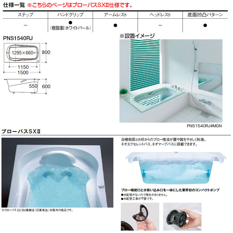 ●浴槽 ネオマーブバス[埋込浴槽][1500サイズ][エプロンなし][ワンプッシュ排水栓式][ブローバスSX2]