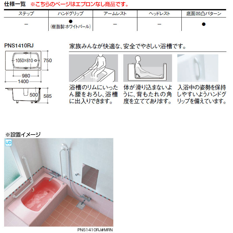 ●浴槽 ネオマーブバス[埋込浴槽][いたわり浴槽][1400サイズ][エプロンなし][ワンプッシュ排水栓式]