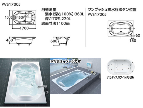 ●浴槽 スーパーエクセレントバス[埋込浴槽][1700サイズ][ワンプッシュ排水栓式][エアブロー2][パラダイスホワイト]
