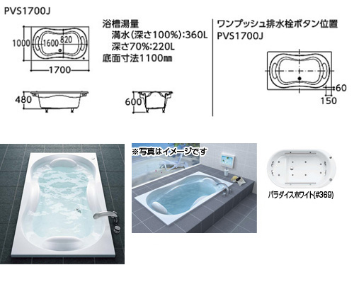 ●浴槽 スーパーエクセレントバス[埋込浴槽][1700サイズ][ワンプッシュ排水栓式][パラダイスホワイト]