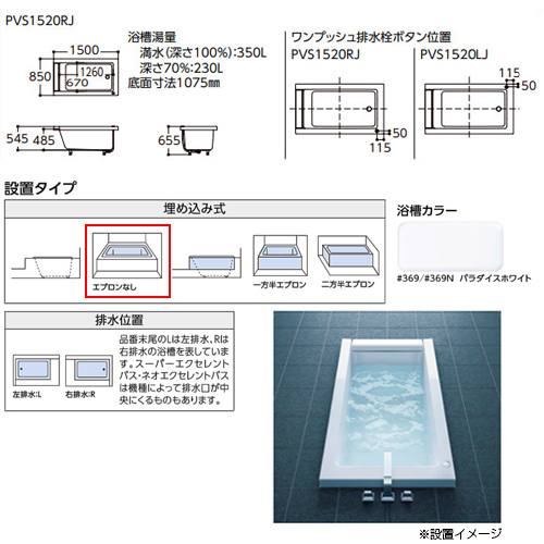 ●浴槽 スーパーエクセレントバス[埋込浴槽][1500サイズ][ワンプッシュ排水栓式][エアブロー2][ブローバスSX2][ソフトピロー付][パラダイスホワイト]