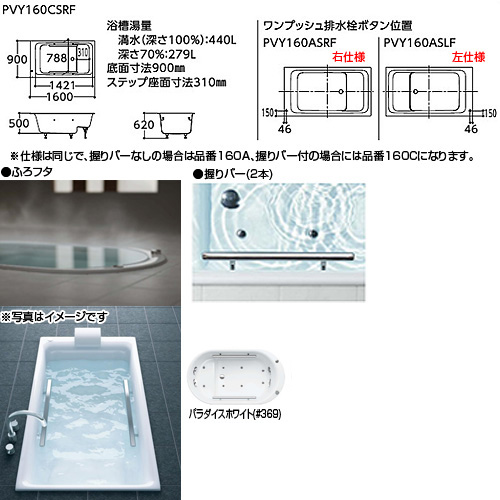 このページは[パラダイスホワイト][排水ボタン右仕様]の商品です。
