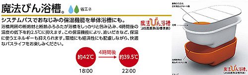 ・魔法びん浴槽(システムバスでおなじみの保温機能を単体浴槽にも)