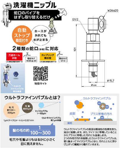 FB洗濯機用ニップル[ウルトラファインバブル][洗濯機簡単取付][全自動洗濯機用][ドラム式洗濯機用]