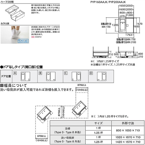 ※添付画像を参考に浴槽とドア部の位置を選択して下さい。
