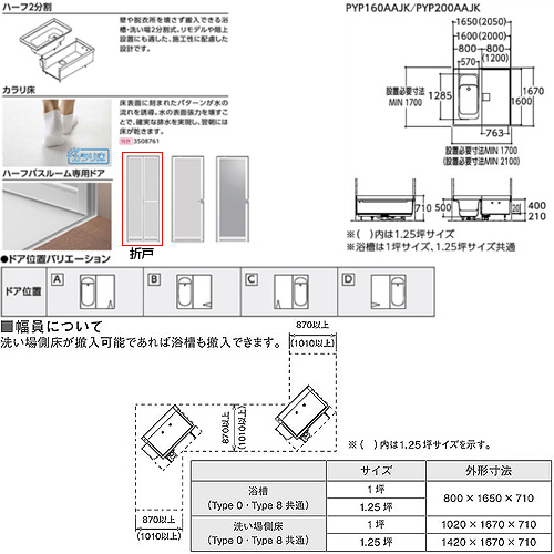 ※添付画像を参考に浴槽とドア部の位置を選択して下さい。