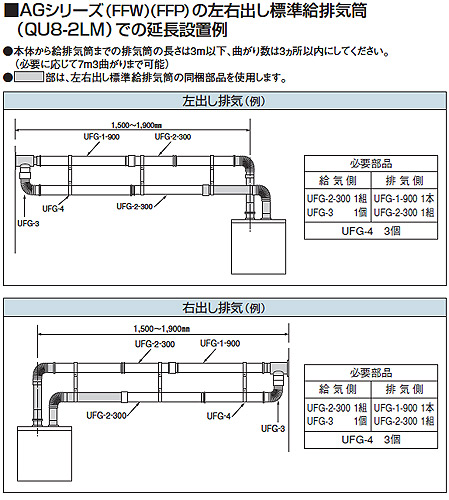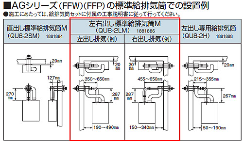 標準給排気筒セット[FFP・FFW用][左右出しタイプ][石油給湯器部材]
