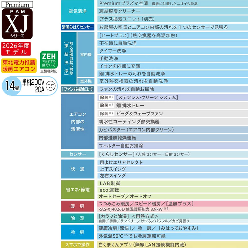 ルームエアコン[XJシリーズ][200V][14畳][4.0kW][白くまくん][スターホワイト][2026年モデル]