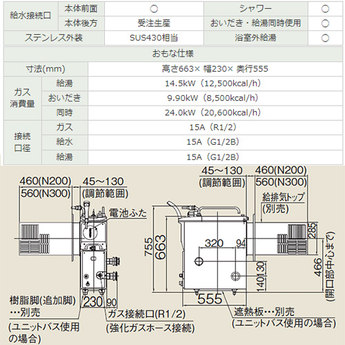 ※商品画像は給水給湯接続口:RRタイプ・循環口の向き:本体右側タイプです。
