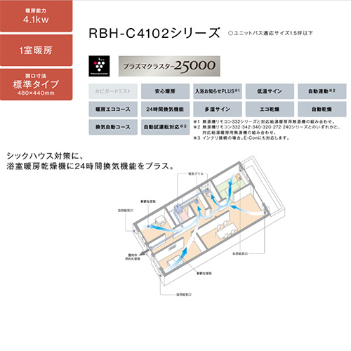 暖房、衣類乾燥、24時間換気の機能が付いた商品です。